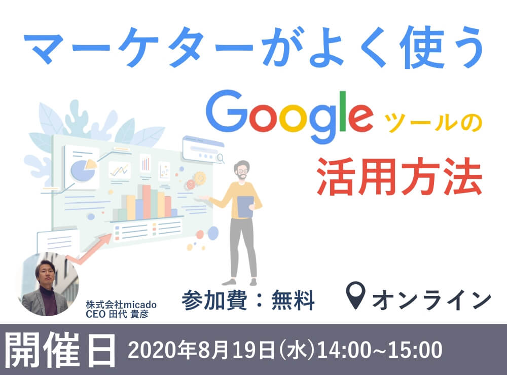 8/19[オンラインセミナー]マーケターがよく使うGoogleツールの活用方法