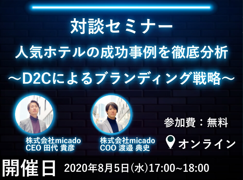 8/5【対談セミナー】人気ホテルの成功事例を徹底分析〜D2Cによるブランディング戦略〜