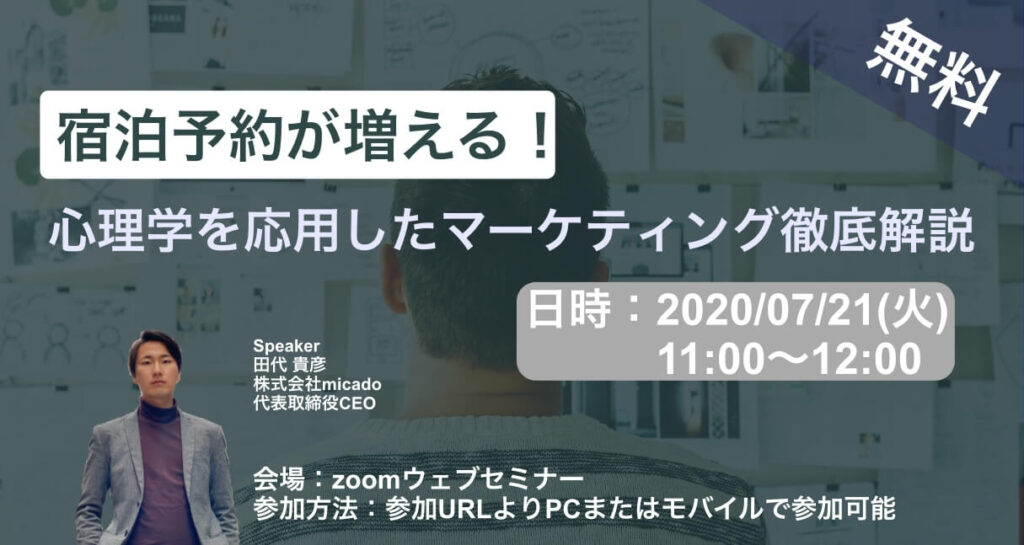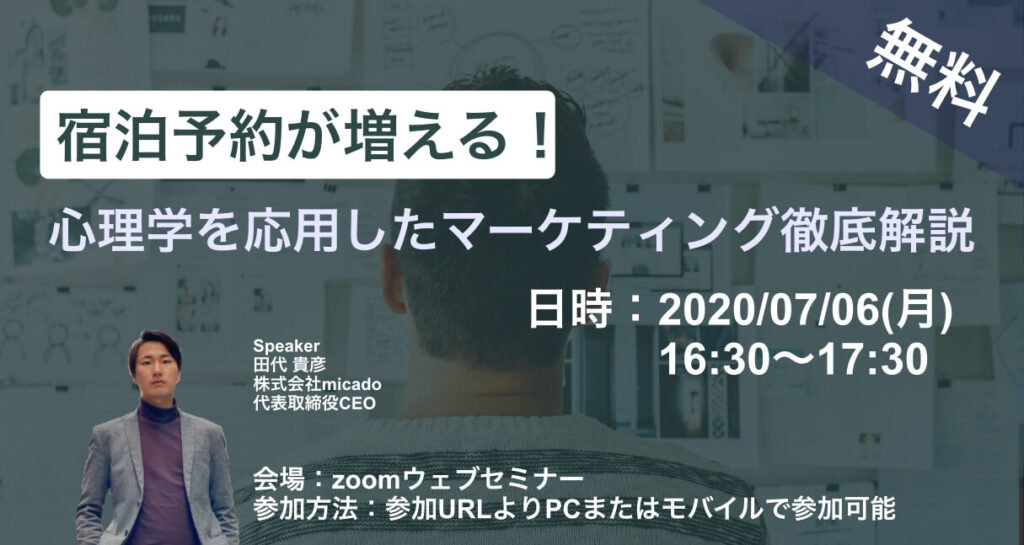 7/21[オンラインセミナー]宿泊予約が増える!心理学を応用したマーケティング徹底解説
