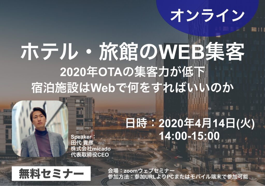 【セミナー情報】ホテル・旅館のWEB集客〜2020年以降の宿泊施設の行うべき対策〜